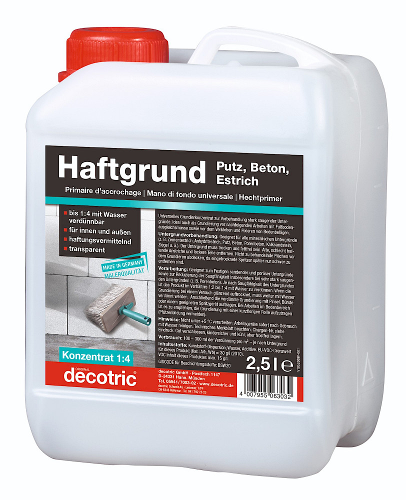 Primaire concentré universel pour le traitement de supports fortement absorbants. Aussi idéal avant des travaux de ragréage ou de collage de revêtements de sol.